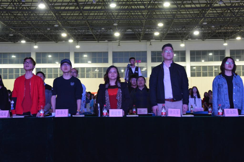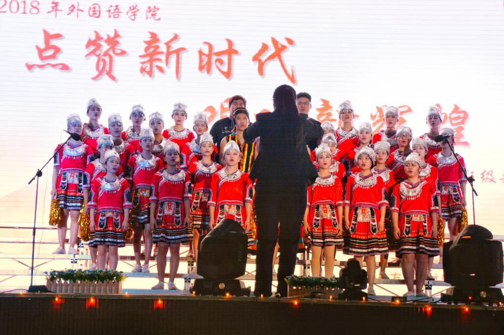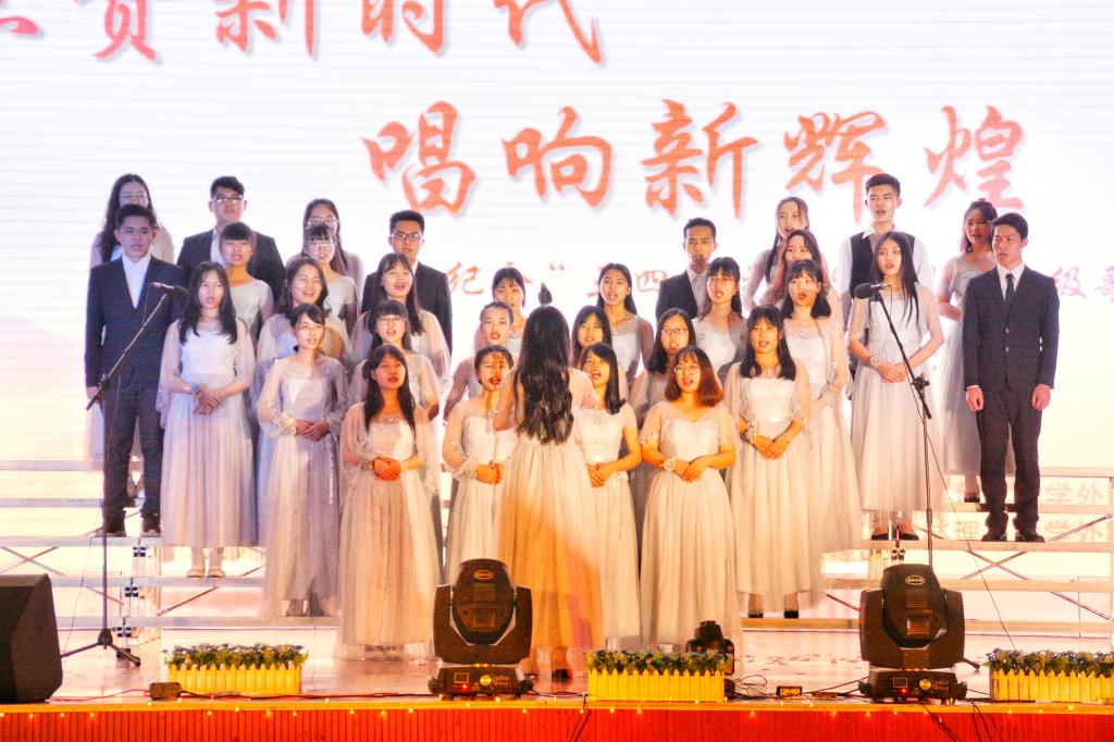 为隆重纪念五四运动99周年,庆祝建团96周年,加强学生爱国主义教育。2018年3月30日晚上7点,外国语开元(中国)“点赞新时代,唱响新辉煌”纪念五四运动99周年班级歌咏比赛在我校雁山校区体育馆隆重举行。本次比赛由我院团委书记钟立军、英语教研室副主任彭奉天、英语教研室教授黄廷慧、校艺术团副团长李成斌、校文艺部部长郭永阳担任评委,邀请到我院党委副书记江玲、院长助理曾文华、日语教研室主任覃霄以及各开元(中国)艺术团代表作为本次活动的嘉宾。外国语开元(中国)15、16、17级全体学生参与本次比赛。