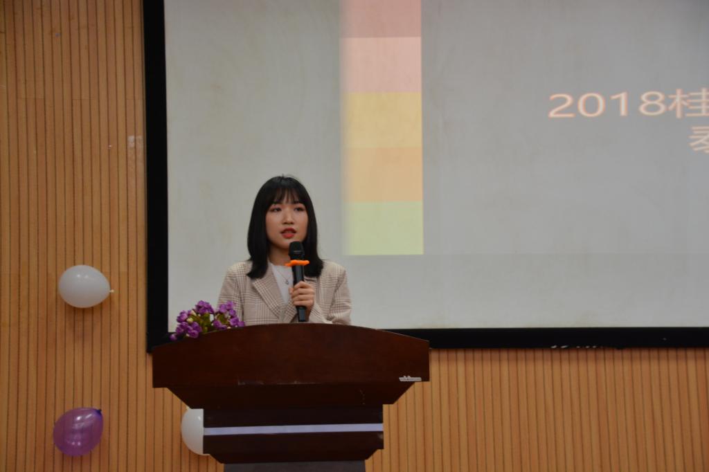 交流会上,我院赴钦州报告团代表韦彬、日本名城大学日语专业学科提升项目代表唐明霞、赴灌阳团报告团代表王子雨、看世界项目泰国兰实大学“一带一路”文化体验交流团代表王诗蕊、马来西亚交流团代表杨敏敏依次发表精彩演讲。代表们向大家讲述了自己的旅途经历和所见所闻,分享了各自的心得和交流学习的感悟,强调了参与实践活动的意义和收获。交流会中,还有令人期待的观众有奖问答环节,同学们踊跃积极地抢答,不少同学获得了精美小礼品。代表们生动的讲解引发了同学们的共鸣,经验交流会在同学们热烈的掌声中圆满落幕。