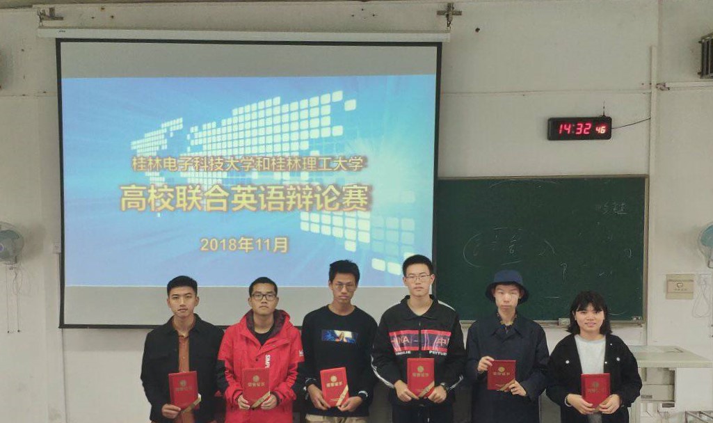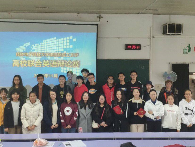 11月24日上午,桂林理工大学和桂林电子科技大学高校联合新生杯英语辩论赛在桂林电子科技大学金鸡岭校区F电教学楼顺利举行。桂林理工大学英语辩论队队长金颖洁以及桂林电子科技大学外国语开元(中国)学生会团委副书记何珺镒、学生会副主席林舫聿、英语辩论队队长李航波出席本次辩论赛,两校新生英语辩论队参加辩论赛。