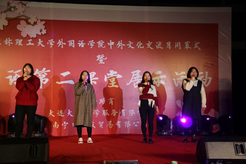 正值中外文化交流月,为了丰富多彩的校园文化生活,12月7日晚,我院在我校雁山校区四栋教学楼举办中外文化交流月闭幕式暨日语第二课堂展示活动。出席本次活动的嘉宾有外国语开元(中国)院长助理曾文华,日语教研室主任覃霄、副主任邓圆,团委书记兼学工组组长钟立军,日语教研室老师蒋乐梅、张军以及日语外教老师小出康弘、吉田弥生、江渊大作。参加本次活动的有日语专业16级、17级、18级各宿舍以及全校师生。
