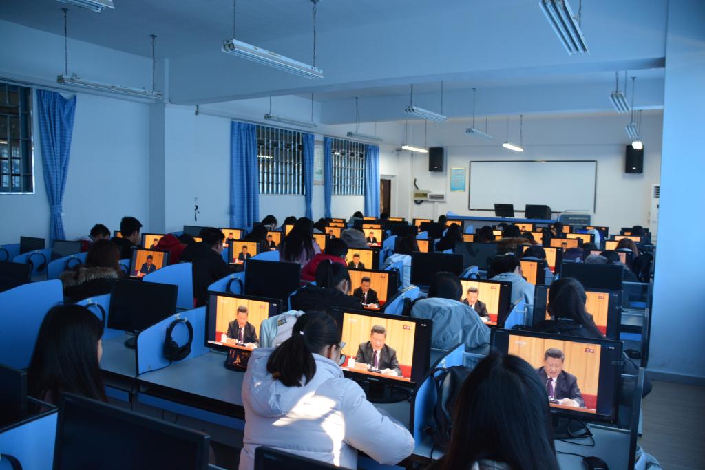 12月18日上午10点,庆祝改革开放40周年大会在北京人民大会堂隆重举行。为更好的引导广大师生加强党性修养,进一步坚定理想信念,我院组织在校师生在雁山校区4栋教学楼04203教室观看庆祝改革开放40周年大会,共同聆听了习近平总书记的重要讲话。我院党委副书记邓洁琼和2017级辅导员梁天秦一同观看。