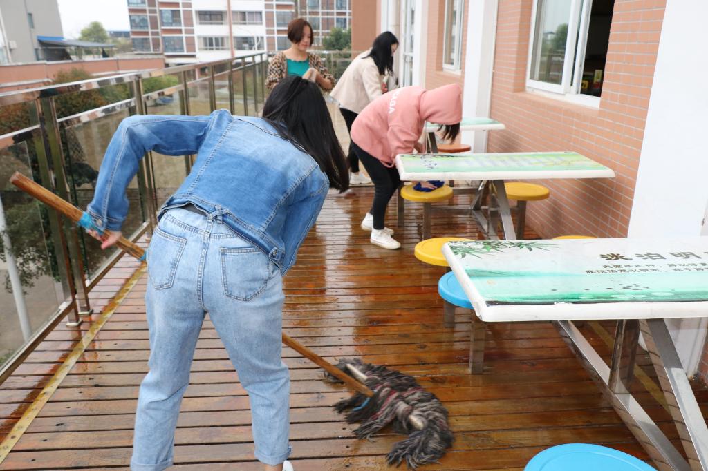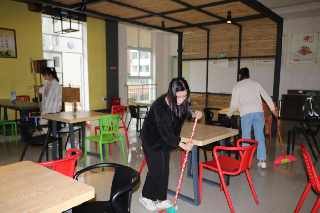 志愿者们签到后活动负责人按小组分配好任务,由各小组长带领组员清扫各自负责的区域。活动开始,食堂阿姨将准备好的温水分给各个小组,扫地,拖地,擦桌子,擦架子,志愿者们共同协作不放过任何一个卫生死角。经过一个小时的努力,食堂变得干净整洁,不仅给就餐的同学提供了舒适的就餐环境,营造良好的校园环境,还大大减轻了食堂阿姨们的工作负担。在志愿服务的过程中,志愿者们不仅对食堂的清扫过程有了更深刻的了解,也亲身体验到了食堂阿姨们工作的艰辛。为此我们号召同学们一起进行文明就餐,提高文明素质,弘扬文明新风。