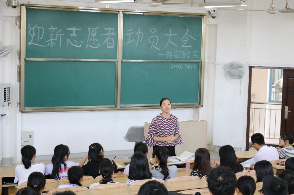 会上,蒋玄老师首先介绍了本次大会的目的是明确志愿者的工作任务,并指出志愿者所担工作的重要性,强调了在迎新过程中的注意事项,确保引导新生完成报到、顺利入学。随后,邓洁琼老师对所有迎新工作人员们提出了希望和要求:希望迎新工作能做到“三满意”,即让学生、家长和社会满意;要求志愿者们在帮助新生时要热情周到、耐心细致;同时还要求全体工作人员务必珍惜本次服务新生的机会,从细节做起,从自身做起,用热情和微笑迎接2019级新生的到来。