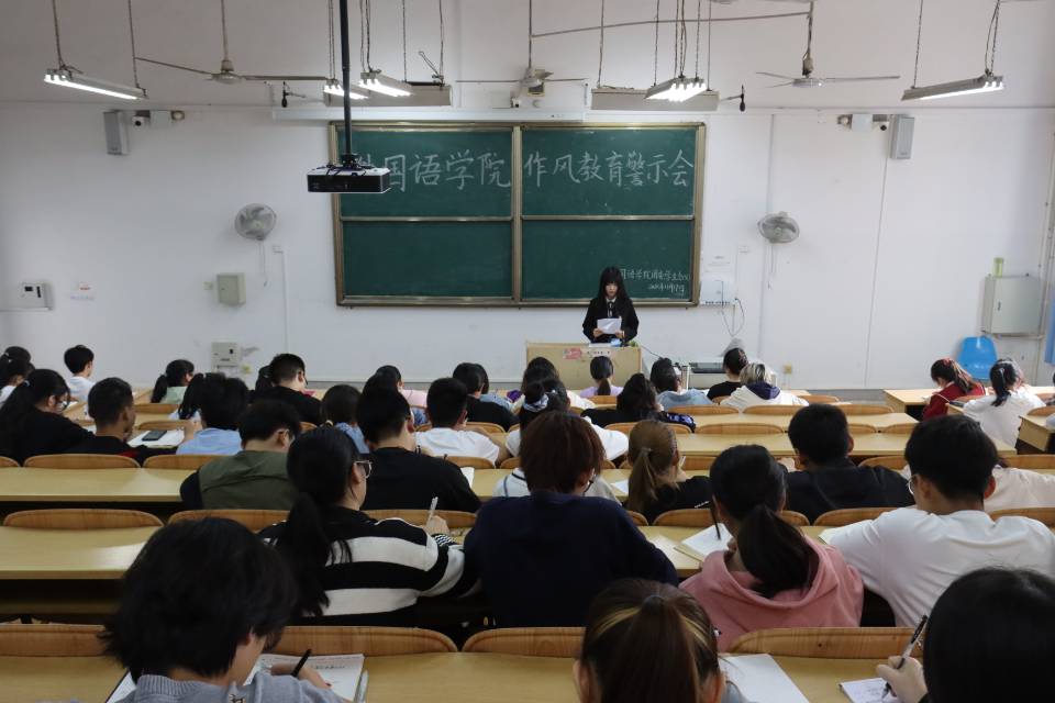 2020年11月17日中午12点半,外国语开元(中国)作风教育警示会在我校雁山校区四栋教学楼04109教室顺利召开。本次大会特邀到我院团委兼职副书记与18级辅导员梁璇出席,我院团委、学生会全体成员到场参加。