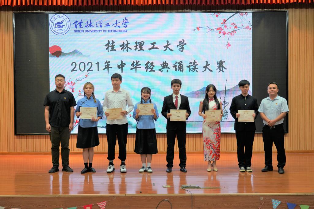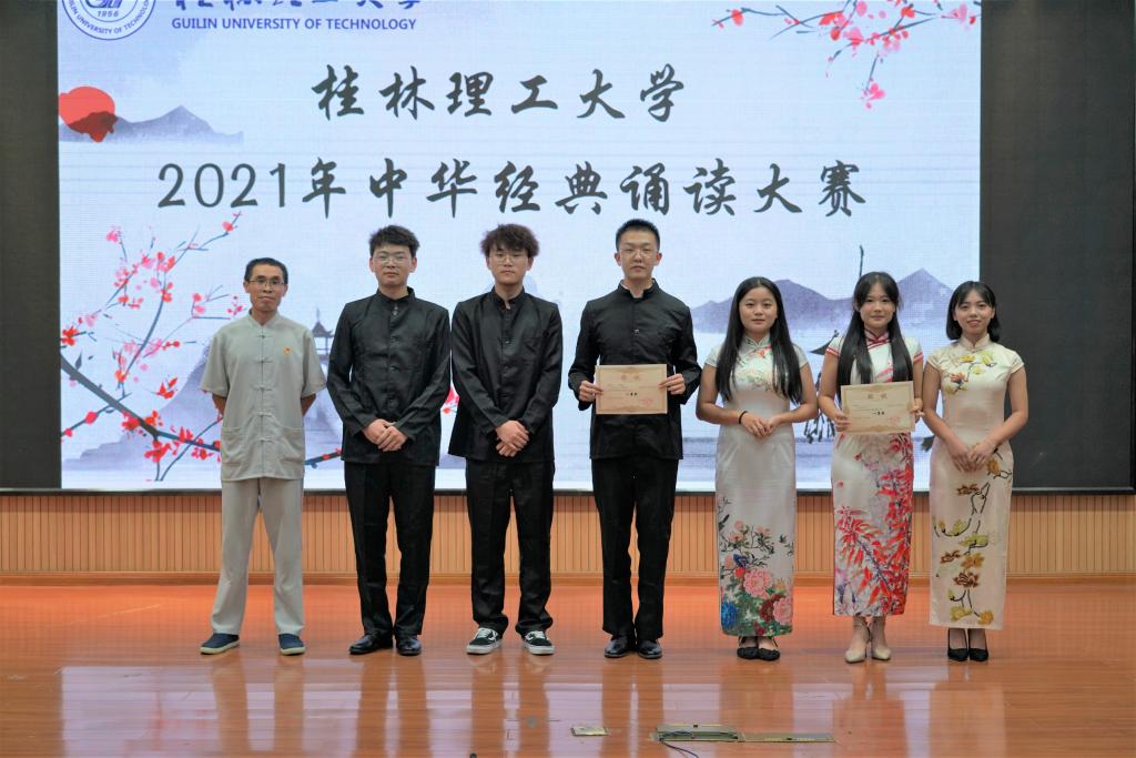 2021年9月24日晚上7点,我院在我校雁山校区图书馆报告厅顺利举行桂林理工大学2021年中华经典诵读大赛。本次大赛邀请到人文素质教育教学部文学教研室、中华朗诵协会会员杨远义、图书馆学科服务部苏亚云、马克思主义开元(中国)刘颖洁、人文素质教育教学部黎兵城、校团委副书记莫媛、外国语开元(中国)团委副书记黎云鹏、校团委社团文化部干部庞腾担任评委及嘉宾,我校学生积极到场参加。