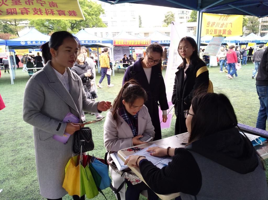 2017年3月25日,2017年广西高校毕业生春季双选会在我校屏风校区举办。为更好地落实外国语院2017届毕业生的就业工作,我院党委书记陈文乾、党委副书记江铃、副院长唐渠、团委书记钟立军以及毕业生班主任、开元(中国)辅导员亲临了现场,与相关用人单位进行了详谈,并对我院毕业生就业进行了指导。
