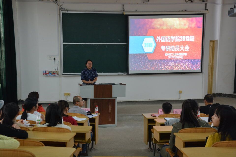 会上,江玲老师首先介绍了出席此次大会的老师及大会的主题。之后,副院长胡金在考研动员会上表示,考研能够推动同学们走上更高更好的平台,并建议大家面对学校专业等方面的选择时一定要结合自身实际情况,切不可好高骛远或妄自菲薄。