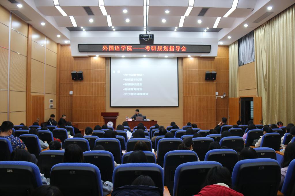 为了更好指导我院学生考研规划,11月25日晚,我院在我校雁山校区12栋教学楼一楼学术报告厅开展考研规划指导会。本次指导会邀请沪江网校张雪峰考研指导团队代理人兼我校教务处考试中心退休教师柳青伟担任主讲人,我院团委书记钟立军出席指导会,我院16级全体学生参加指导会。