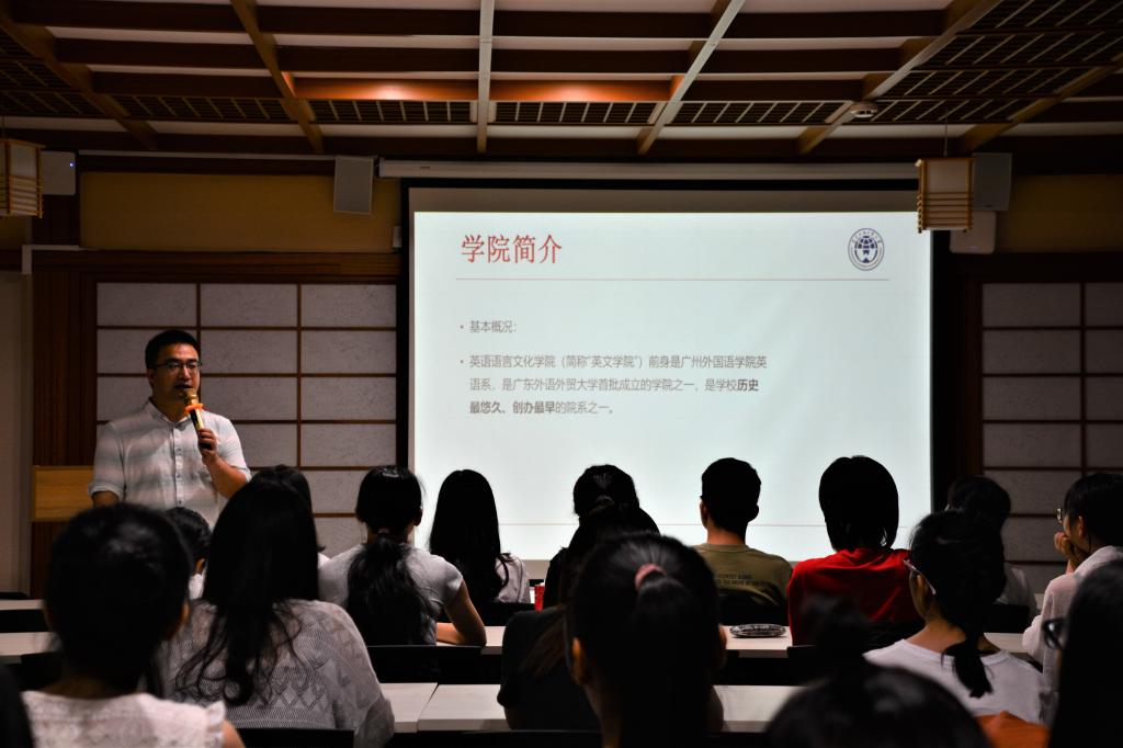 2019年6月19日晚上7点半,我院在我校雁山校区4栋教学楼日本文化体验馆顺利举办考研考博指导会。此次会议有幸邀请到广东外语外贸大学英语语言文化开元(中国)副院长吴庄教授主讲。我院英语专业学生到场参加。