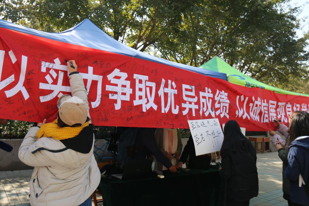 2016年12月28日,院在一号食堂处举办了“以实力争取优异成绩,以诚信展现良好学风”的诚信应考签名活动,活动面向全校学生。