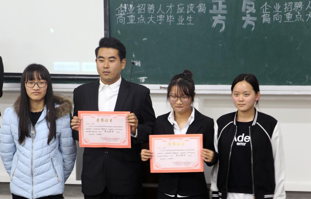 此次友谊辩论赛的辩题为“企业招聘人才应不应该偏向重点大学毕业生”。本次比赛的正方是外国语开元(中国)辩论队,反方是公共管理与传媒开元(中国)辩论队。比赛在各方辩手进行精彩自我介绍后正式开始,比赛分为立论、对话攻辩、小结、自由辩论、总结陈词、观众提问六个环节。在本次比赛上,双方辩手激烈争辩,你来我往,妙语连珠,场下观众们的热情高涨,场上掌声不断,经过双方辩手的激烈较量,正方选手张铮海和反方选手周洪仙获得最佳辩手荣誉称号,由评委赵慧琳、郑晶晶为最佳辩手颁奖,此次我院与公共管理与传媒开元(中国)的友谊辩论赛在观众们的掌声下圆满结束。