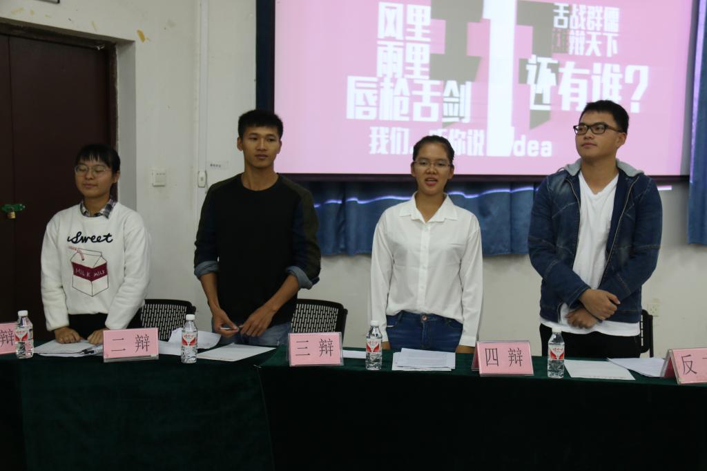 本次辩论赛各场辩题分别是,“网络使人更亲近还是更疏远”、“维系人际关系,主要靠互信还是互利”、“大学生创业应立足于自身优势还是市场需求”、“公众人物是否需要表里如一”、“家庭养老和社会养老哪个更可靠”、“青春贵在脚踏实地还是仰望星空”、“成功路上机遇更重要还是奋斗更重要”。本次比赛依照各班辩论队赛前抽签结果决定每场比赛的正反方。初赛分为陈词质询、驳论质询、小结陈词、自由辩答辩、总结陈词五个环节,在双方简单的自我介绍后,比赛正式开始。双方辩手思路清晰、妙语连珠、针锋相对。在自由答辩环节中气氛更是紧张激烈,将整场辩论赛推向高潮,双方辩手依旧侃侃而谈,引用众多人物来论证自己的观点,场下观众掌声不断,气氛热烈。他们铿锵有力的辩词、出色的口才、镇定的表现,让在场观众为之折服。经过一番精彩角逐,在评委们认真地讨论后,英语17-2班朱丽琳、英语17-3班童欣、英语17-5班刘帆、日语17-2班王千嵘、英语17-3班钟佳良、英语17-5班黄佳宣、日语17-2班张鑫夺得最佳辩手。