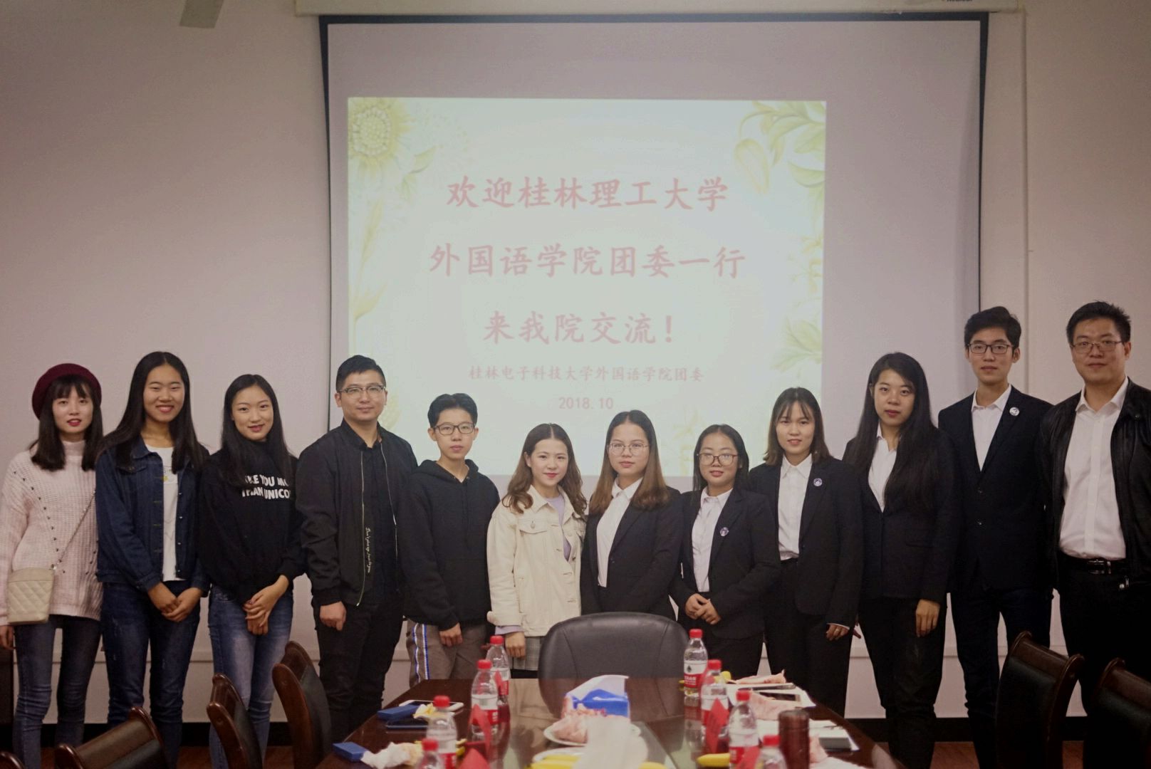 10月20日上午,我院团委书记钟立军带领主席团一行6人到桂林电子科技大学外国语开元(中国)交流学习,出席交流会的还有桂林电子科技大学外国语开元(中国)团委书记吴重江、主席团成员及易班新媒体主任等6人。