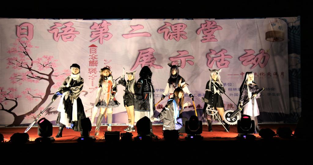 202012月11日晚上7点,我院在我校雁山校区4栋教学楼成功举办了2020年度中外文化交流月闭幕式暨日语第二课堂展示活动。出席本次活动的嘉宾有我院党委副书记邓洁琼我院专职组织员陈欣、日语教研室主任邓圆19级辅导员陈永梅、20级辅导员王好男、日语教研室老师陈蓓、张军、蒋乐梅、董丽仙、日语外教老师小出康弘。我院日语专业18、1920级学生宿舍,英语专业1920级各两个学生宿舍以及我校师生到场参加。