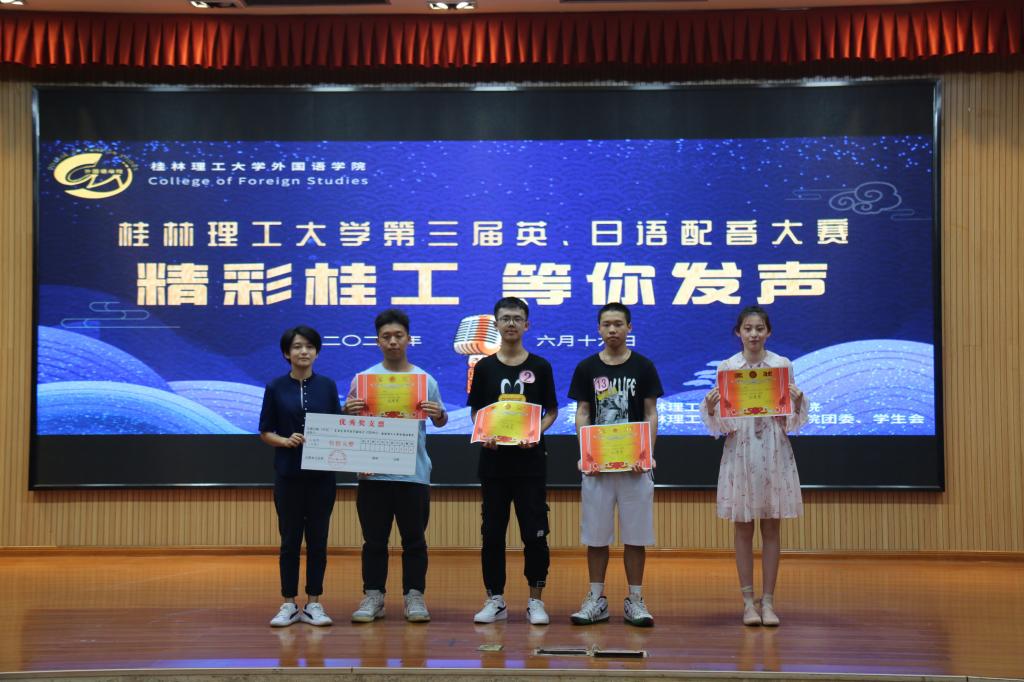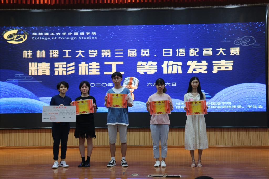 2020年6月16日下午,我院在我校雁山校区图书馆报告厅顺利举办桂林理工大学第三届英、日语配音大赛决赛,线上同步直播。本次活动邀请了学生工作部(处)张成龙部(处)长、教务处唐国强副处长、化学与生物工程开元(中国)匡小军院长、测绘地理信息开元(中国)刘立龙院长、商开元(中国)蒙永亨副院长、机械与控制工程开元(中国)王迎波副书记、校团委郭彦汝老师以及我院领导班子全体成员作为嘉宾莅临活动现场,并邀请了日语教研室主任邓圆老师和英语教研室副主任蒋霞老师、冯雪琦老师担任本次大赛专业评委,同时由校、院级学生会共15名代表作为大众评委。全校100名学生线下观看本次比赛,9300余名师生观看线上直播。