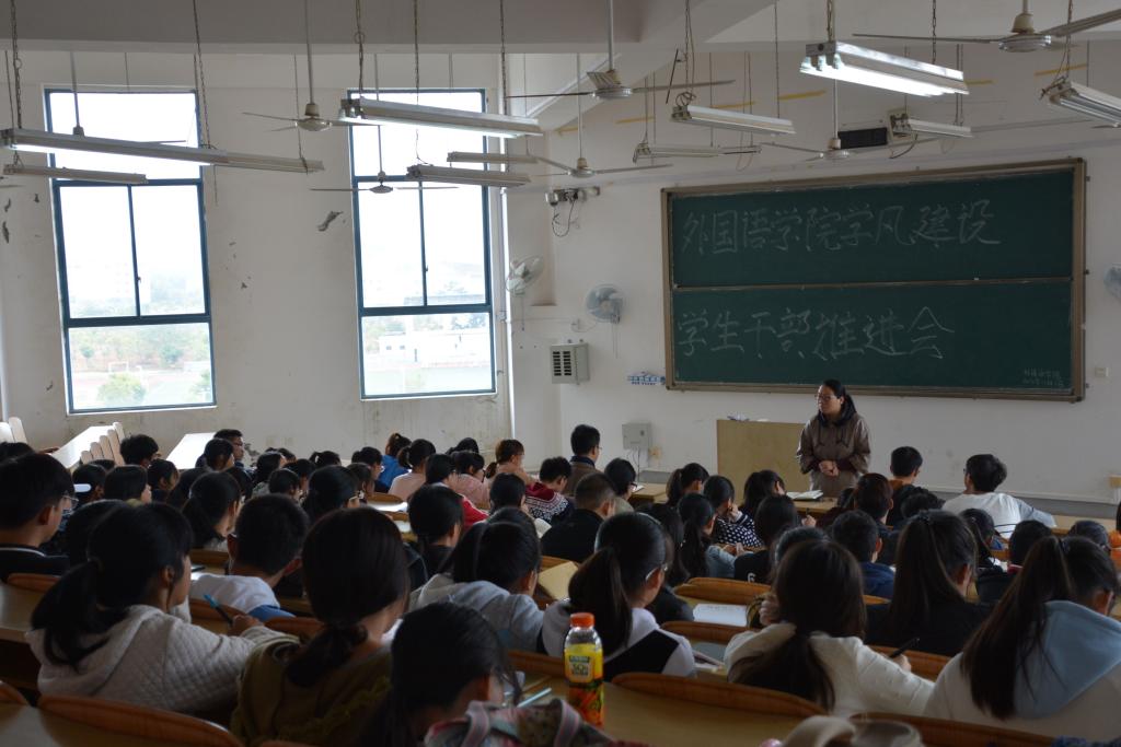 11月1日中午,我院在04525教室召开学生干部学风建设推进会,我院党委副书记江玲、团委书记钟立军出席了本次推进会,外国语开元(中国)全体团委学生会成员参加了此次推进会。