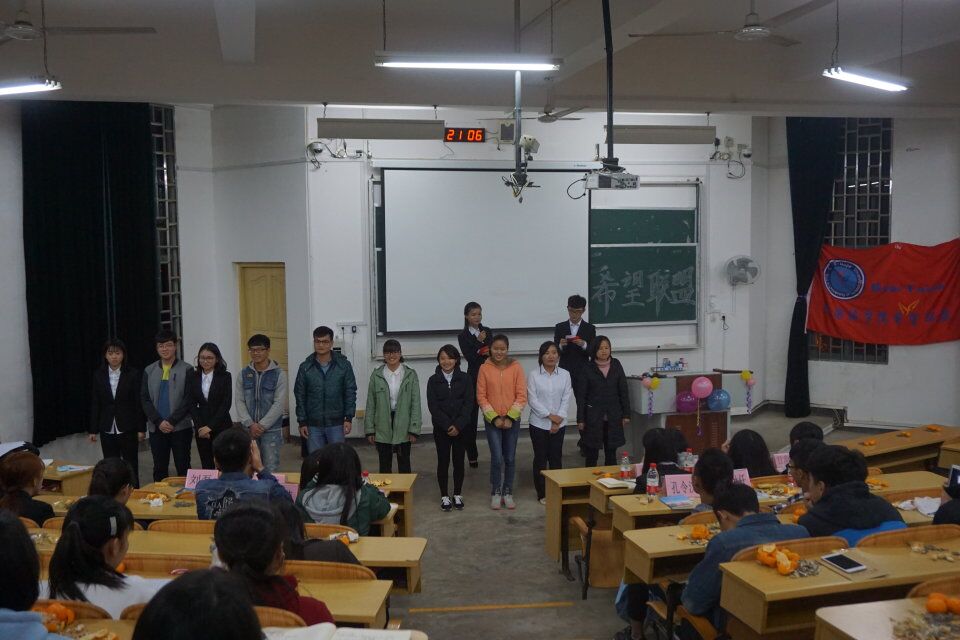 人通过反省才会成长,社团不断总结才能走的更远。2016年12月23日晚,希望联盟五周年庆暨总结大会如期在教室05306举办。大会形式比以往多样,一切都给人欣欣向然的感觉,以一种独特的方式庆祝着社团成立五周年庆。希望联盟前社长梁华锋学姐、社长黄信妹、副社长韦姣林和甘海萍以及各兄弟社团代表出席了本次活动。