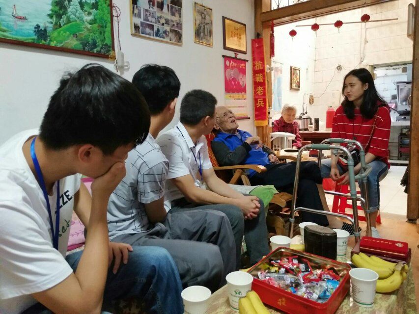 活动开始当天,志愿者们一同前往老兵家中。这里有一位将至期颐之年的老兵奶奶,她虽然听力不太好,但是说话吐字很清楚。给志愿者们讲述了她如何开始报名参军到退役期间的很多故事,从战争期间枪支弹药的缺乏和粮食的严重不足到最后战争的胜利,在场的志愿者们仿佛跟着她的记忆回到了从前感受了一番。记忆犹新的是,她当初为了参军加入战争打倒外国侵略者,不顾父母的反对,选择义无反顾地来到了部队中去保卫祖国。这让志愿者们感受到了今日和谐生活来之不易,老兵奶奶的爱国热情,值得我们每一个人去学习。