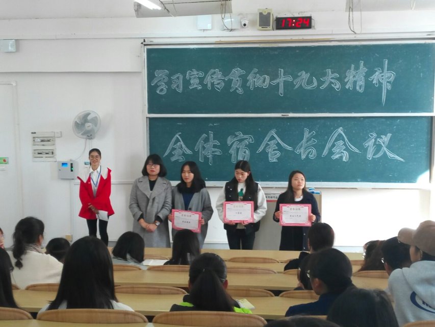 会议的最后,由宿管委会长、副会长及赵思聪老师为在宿舍装饰大赛中获奖的宿舍颁奖。