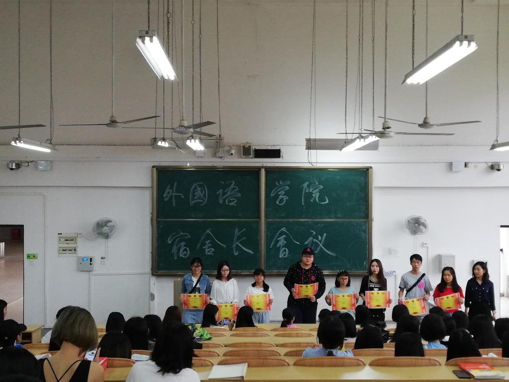 会议上农珑老师就宿舍安全问题发表讲话。通过学校的宿舍安全事件对全体宿舍提出建议,再次强调了大功率电器的使用,外宿晚归的安全隐患,以及宿舍关系的维护等问题。同时会议还对在宿舍形象设计大赛中获得好成绩的宿舍进行了颁奖,鼓励良好的宿舍形象以及学习氛围。