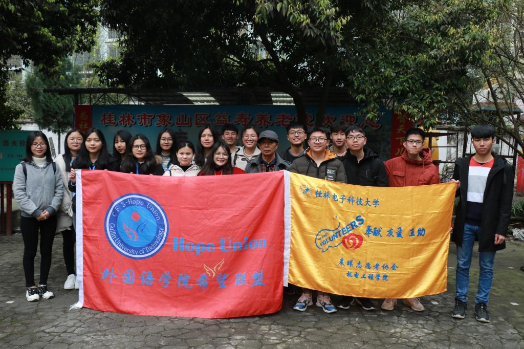 为了传承和践行“雷锋精神”,培养当代大学生乐于助人、无私奉献的崇高品质,2019年3月24日,外国语开元(中国)希望联盟和桂林电子科技大学晨曦志愿者协会联合组织开展看望桂林市益寿养老院公益活动。