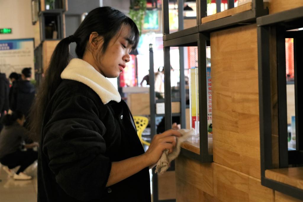 活动开始前,志愿者们带着清扫食堂所需要的工具准时到达印象桂工前集合。随后,活动负责人进行点名签到、分配每组的任务并交代活动的注意事项。然后各组组长带着自己的组员到三号食堂二楼的负责区域展开清扫。首先,志愿者们用浸满洗洁剂的抹布对桌面进行除污,接着用干净的湿抹布进行二次清洁。随后,志愿者们认真地对地面进行打扫,不放过地面上的任何脏处。先完成清扫任务的小组看到其他小组还没完成时便主动上前帮忙,很快大家一齐完成了清扫任务。最后负责人点名签退,志愿者们集体拍照留念,此次清扫活动圆满结束。