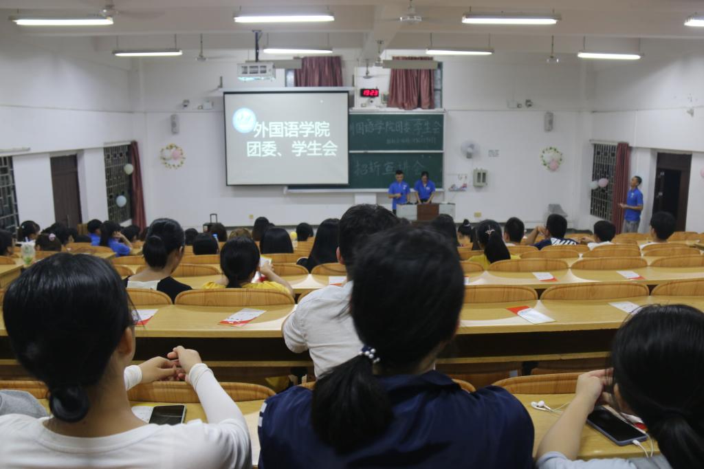2020年9月16日晚上7点,我院于雁山校区05314教室召开了2020年外国语开元(中国)团委、学生会招新宣讲会。我院团委副书记韦运垌、刘雨欣,我院学生会主席团成员蓝羚元、张文洁、姚丽婵出席会议,团委、学生会全体成员及我院2020级新生到场参加。会议由外联部部长康轩宁主持。