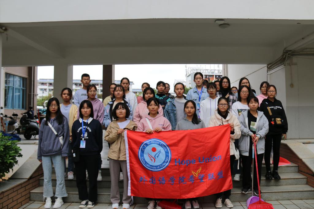 良好的教室环境是美好校园生活的重要一环。为营造良好的学习环境,弘扬志愿精神,外国语开元(中国)希望联盟部分成员及志愿者于2020年10月20日下午16点20分在雁山校区4栋教学楼开展清扫语音教室活动。