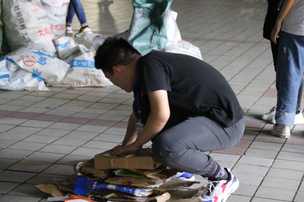 双十一购物狂欢节过后,为使各类纸箱能够更好地被回收利用,11月17日下午,我院希望联盟成员及志愿者于一号组团宿舍楼开展废品回收活动。