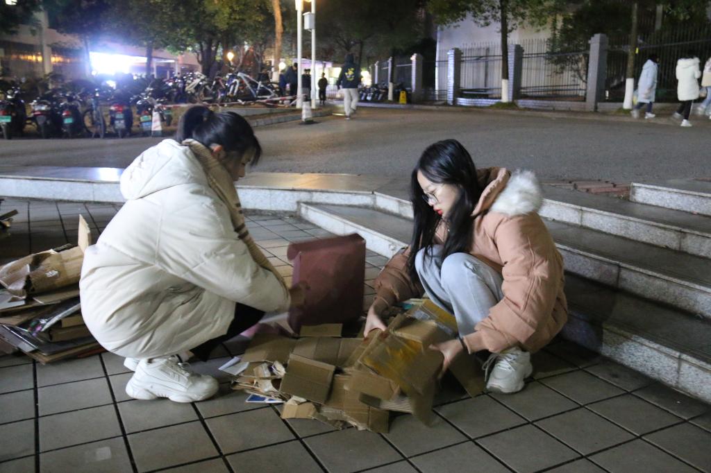 活动开始时,所有志愿者在印象桂工前的广场集合。随后,各小组组长带领组员领取麻袋并到指定楼层回收废品。活动过程中,他们礼貌地敲门并询问同学们是否有可回收的纸箱、空瓶子等废品,同学们积极配合,将废品拿出来并帮助志愿者将其装入麻袋。在进行废品的整理和分类时,志愿者们相互配合,分工协作,折叠纸箱,分类瓶子,最后清扫无法回收的垃圾。通过志愿者们的共同努力,废品获得二次利用,实现了新价值,此次活动也圆满结束。