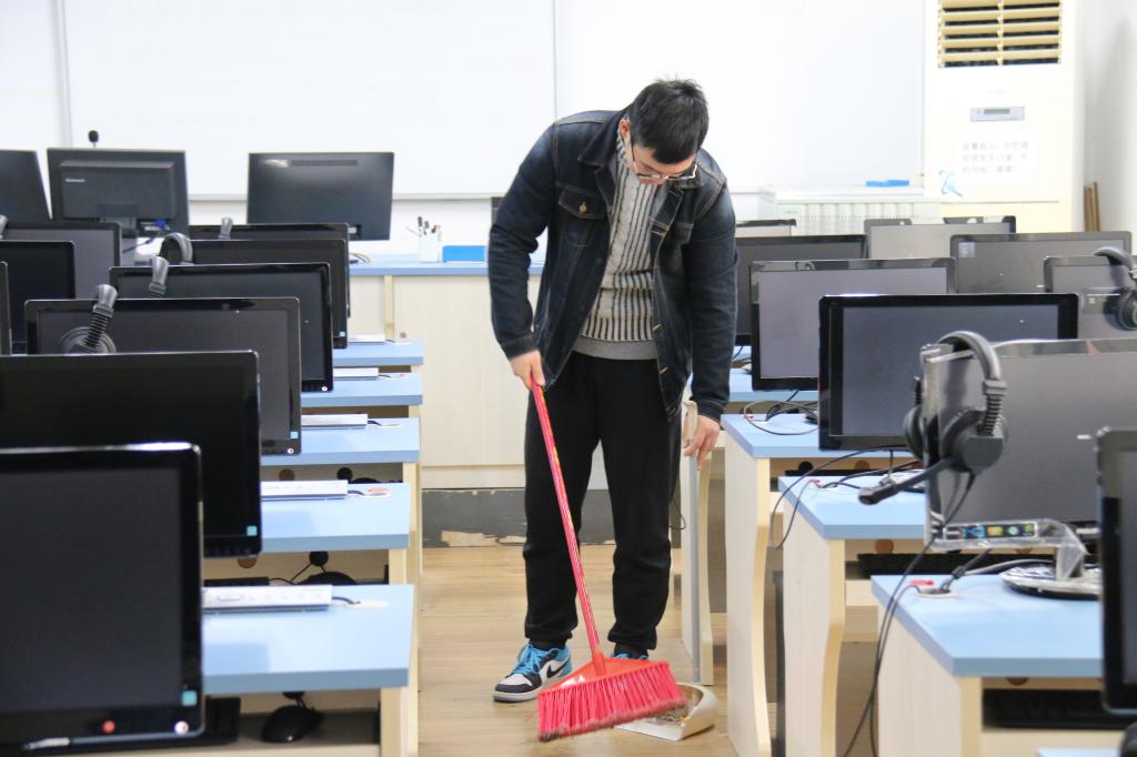 活动开始前,所有参与人员在4栋教学楼广场集合签到,随后各组组长带领小组成员去往指定的语音教室进行清扫。清扫语音教室活动的开展方式以擦拭为主,着重于清理语音室内电子设备的灰尘与污渍。活动期间,志愿者们积极认真地进行打扫,桌面的整理、玻璃窗的擦洗、电脑键盘和耳机的擦拭、地板及卫生死角的清扫,志愿者们都仔细认真地一一做好,不留任何灰尘和垃圾。提前完成任务的小组也会赶去帮助未完成的小组,大家互帮互助,相互配合,最后在负责人检查合格后才签退离开。此次清扫活动也在干净整洁的语音教室中圆满结束。