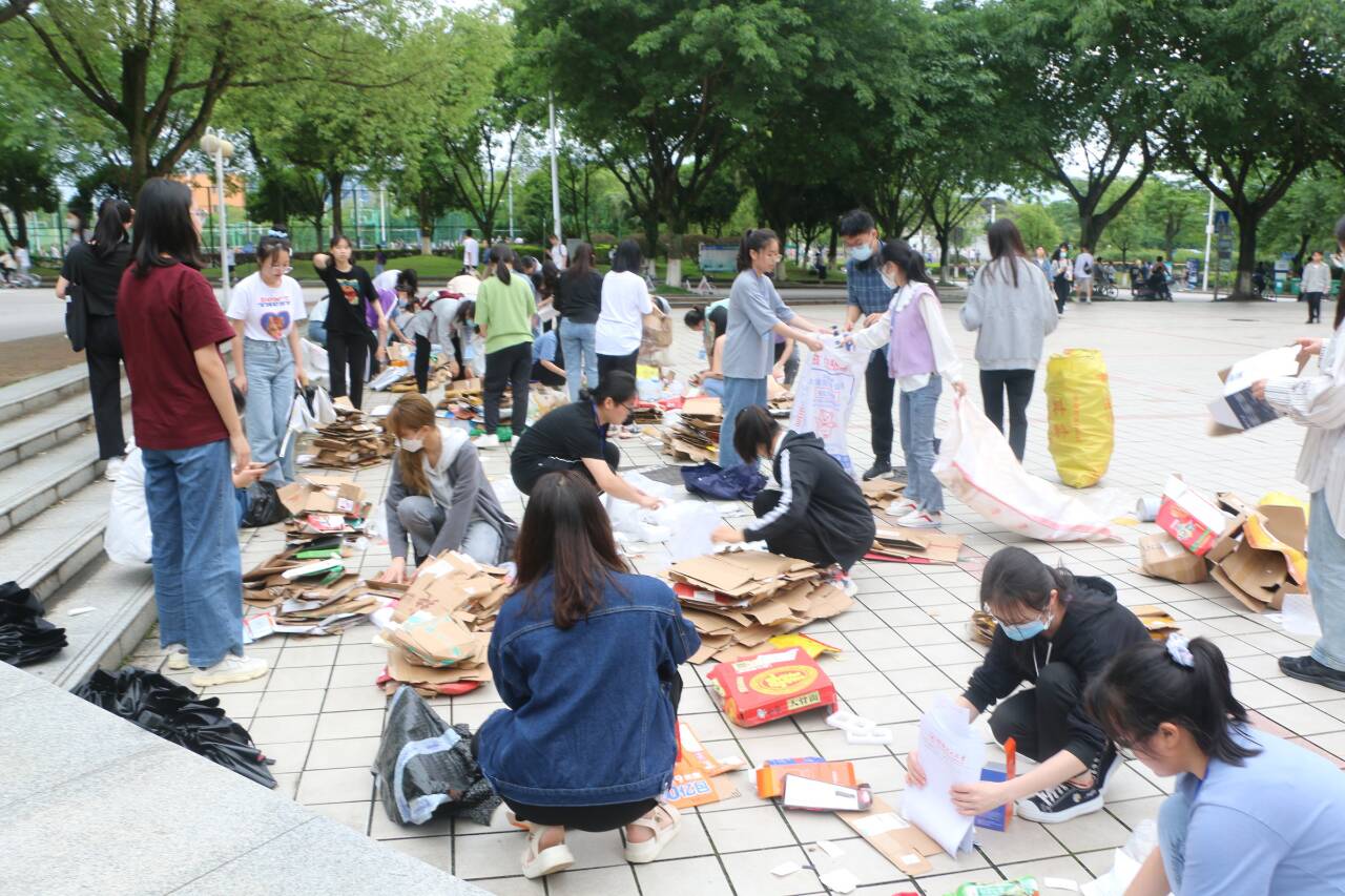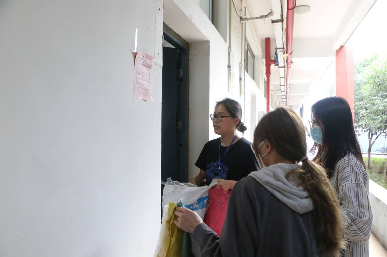 5月13日下午,志愿者们准时到达集合场地,并与工作人员进行合影,完成点名签到。小组长们认领好自己的组员后,去拿编织袋上楼,开始废品回收工作。一路上小组长们都在耐心、温柔地和组员们叮嘱此次废品回收的注意事项。工作过程中,志愿者谨记组长的叮嘱,轻声敲门并有礼貌地询问宿舍内的同学是否有废品需要回收。征得同学的同意后,才进入各个宿舍内将纸箱、塑料瓶等废品装入袋子中。有个别宿舍的废品已堆积良久,出现纸板已被浸湿软化的情况,志愿者们也耐心收拾。废品收集工作完成后,志愿者们迅速回到集合地,将废品倒在空地并分类整理好。志愿者们有序签退后离开,工作人员垫后完成场地的清扫。