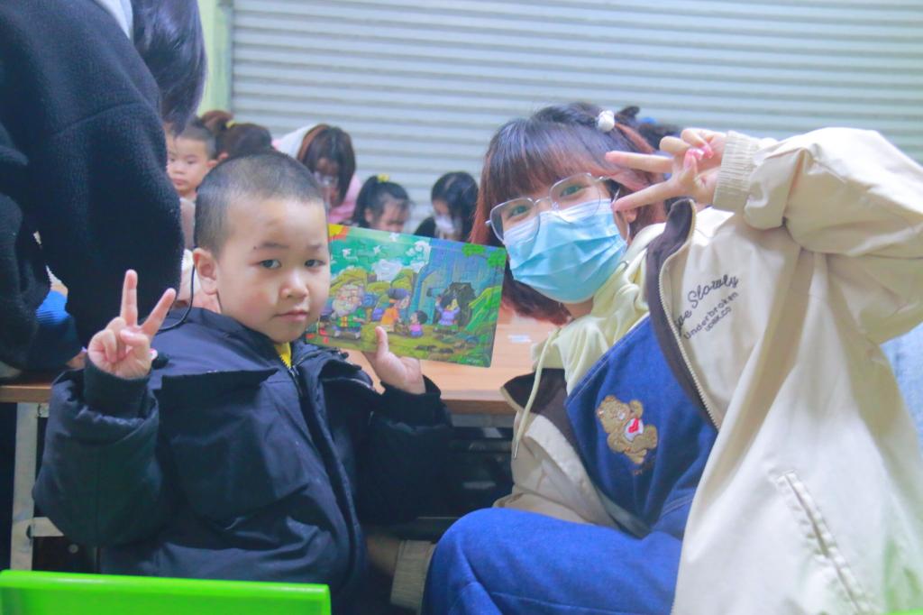 上午九点,志愿者们在活动负责人的带领下安全抵达桂林市圆林聋儿康复中心。看到志愿者们的到来,孩子们脸上洋溢着天真灿烂的笑容。志愿者们带来了拼图、画本与零食。在康复中心老师的带领下,孩子们与志愿者愉快地进行拼图与绘画。在与孩子们互动的过程尽管没有过多欢快的语言交流,但是彼此用心营造了温馨的氛围,孩子们稚嫩的小脸洋溢着幸福的笑容。过程中不仅锻炼了孩子们的动手能力、配合能力和社交能力,增加孩子与外界交流机会,也让孩子感受到来自志愿者和社会的关爱,给他们带来一次快乐的心灵之旅。同时,也加深了志愿者和孩子们之间的友情。最后,志愿者们与孩子们进行了合影留念,在欢乐的笑声和愉快的氛围中,本次活动画上了圆满的句号。