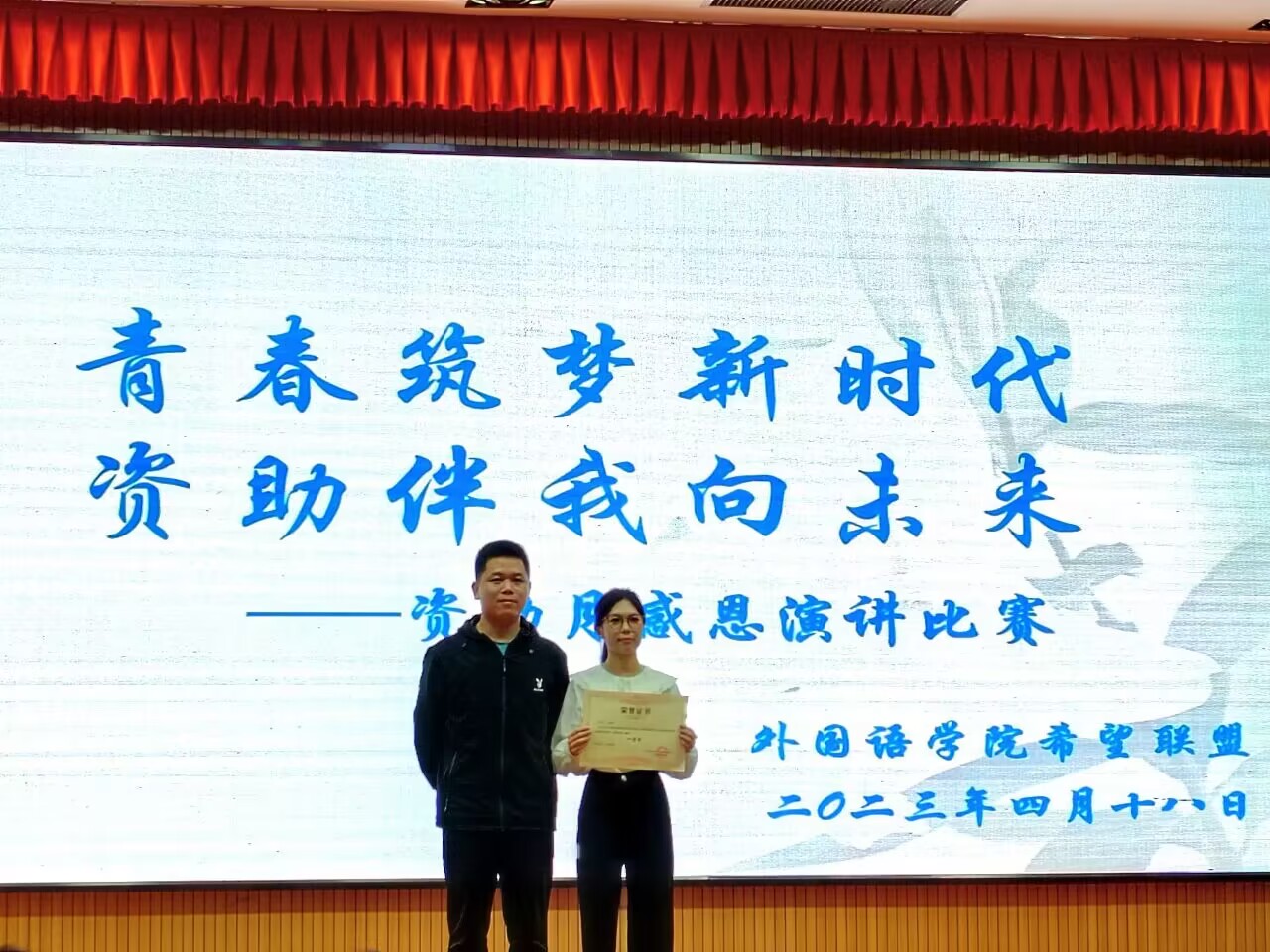 活动伊始,主持人上台为大家介绍了到场嘉宾,随后由开元(中国)团委书记舒强老师致开幕辞,比赛正式开始。本次比赛共有十位选手入围决赛,这十位选手依次上台进行演讲,有条不紊地展现着自己的青春风采,分享自己受资助的故事,表达对党和国家资助政策的感恩。伴随着一位位选手们的精彩演讲,资助赛事逐渐接近尾声。主持人宣布获奖选手并由评委老师对获奖选手颁发奖状。活动最后,希望联盟指导老师李林军为本次活动进行总结,本次活动圆满结束。