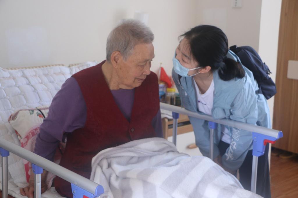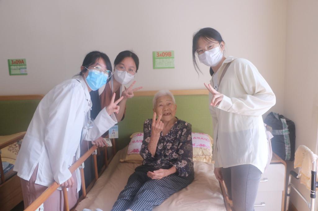 上午九点,志愿者们在活动负责人的带领下安全抵达养老院。在分完组后,志愿者跟随养老院负责人上楼看望老人。看到志愿者们的到来,许多老人的脸上都洋溢着温暖的笑容。在护工的引导下,志愿者与老人们进行了许多互动。志愿者或是进入到老人的房间与其聊天解闷,为其整理床铺;或是在走廊听奶奶们唱曲儿,做他们忠实的听众;亦或是蹲在爷爷奶奶们的膝前听他们讲述过去的故事。在志愿者的陪伴下,老人们感受到了社会对他们的关爱。在其过程中,他们也对志愿者的生活与学习进行热切的问候,志愿者也感受到了老一辈对年轻一辈的殷切期待和温暖关怀。在志愿者们和老人们进行合影留念后,本次活动在老人们不舍的目光中画上了圆满句号。