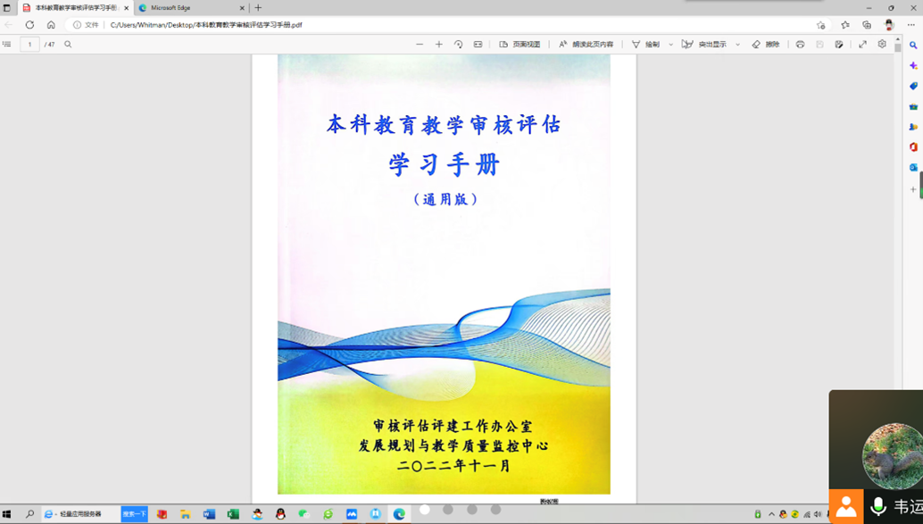 为了更好地迎接我校本科教育教学审核评估, 12月20日下午14:30,大学英语2教研室通过腾讯会议组织召开本科教育教学审核评估工作专题学习会,会议由教研室主任韦运会主持,教研室全体教师参与。
