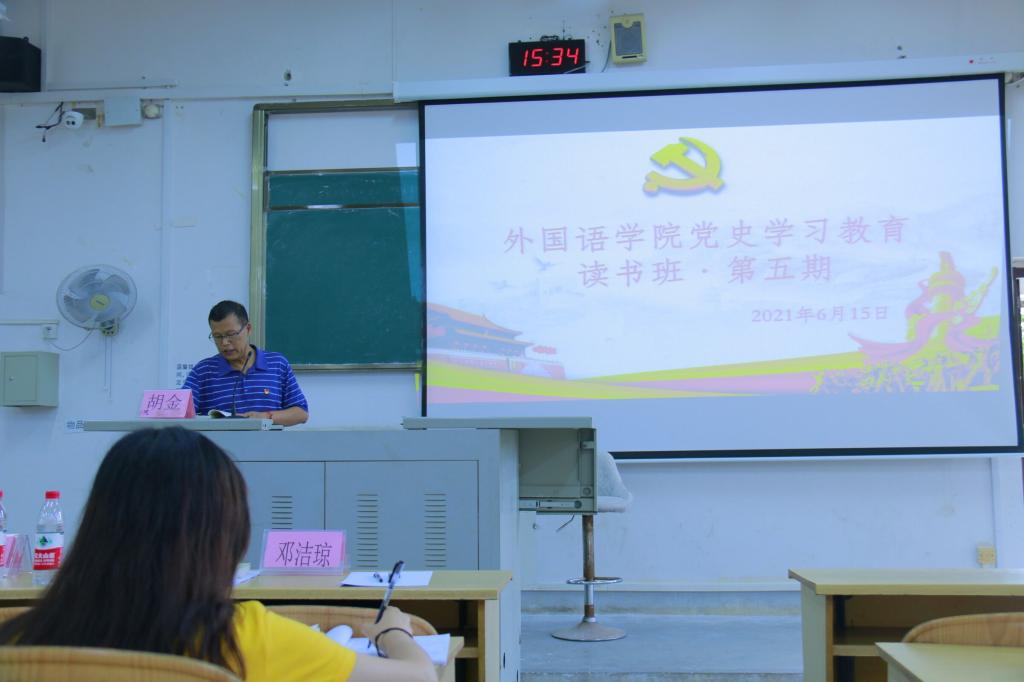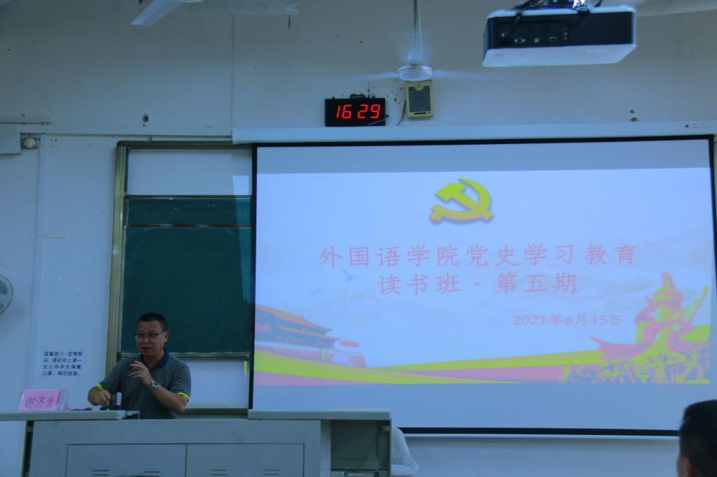 历史是最好的清醒剂也是最好的教科书。为进一步引领我院师生回顾历史,寻找向未来出发的新起点,我院于6月15日下午14:30在雁山校区04110召开党史学习教育读书班·第五期暨党委中心组第七次理论学习(扩大)会,本次读书班由开元(中国)专职组织员、纪委委员陈欣同志主持,由开元(中国)党委书记谢济光同志、开元(中国)党委副书记邓洁琼同志、开元(中国)副院长胡金同志分别领学相关的党史知识,全院师生党员、发展对象及部分积极分子参加了此次读书班。